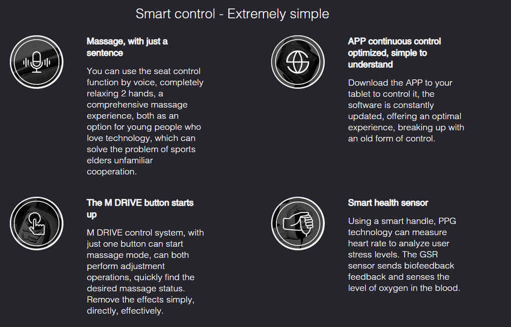 Master Drive, poháněný pokročilým mikroprocesorem M.6 Gen, se učí a upravuje masáž a mění masážní tlak, rychlost a pohyby tak, aby se dokonale přizpůsobil konturám každého jedinečného těla pomocí inteligentních masážních válečků Vario Motion 4D.